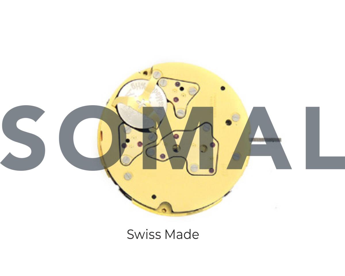 Feature: 3 Hands, Day, Month, Date by Hand, 30 Min @ 9, 1/10 Sec / 10h @ 6, Small Sec @ 3